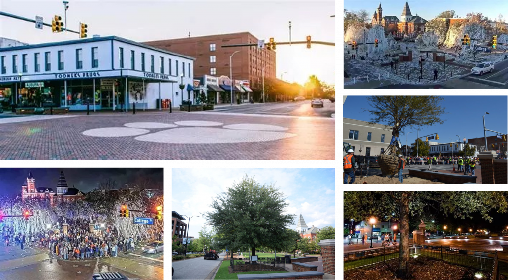 The intersection, which marks the transition from downtown Auburn to the university campus, is known as Toomer’s Corner. It is named after former State Senator “Shel” Toomer (a halfback on Auburn’s first football team in 1892) who founded Toomer’s Drugs in 1896. Toomer’s Drugs is a small business on the corner that has been an Auburn landmark for over 130 years.