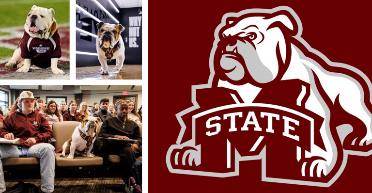 While early “Bullys” tended to roam campus freely or live in frat houses, today, the official university mascot is housed at the College of Veterinary Medicine when not on duty at MS State’s home football games. For all their fierce appearance and reputation, today’s mascot bulldogs are good-natured, friendly animals and favorites among all fans.